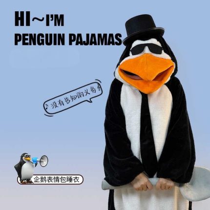 企鵝睡衣連體抽象家居服學生宿舍保暖睡袍