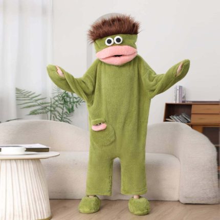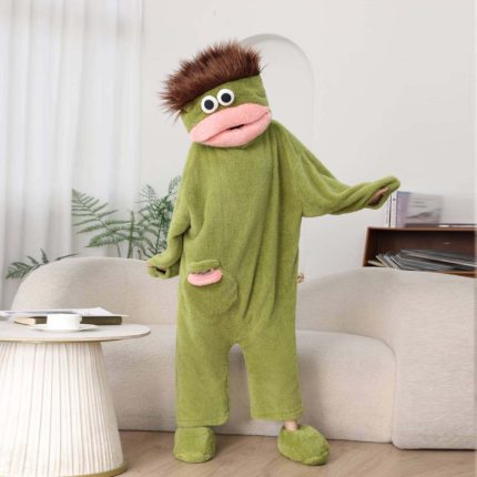丑萌趣味加絨連體睡袍女珊瑚絨加厚保暖秋冬休閒家居服