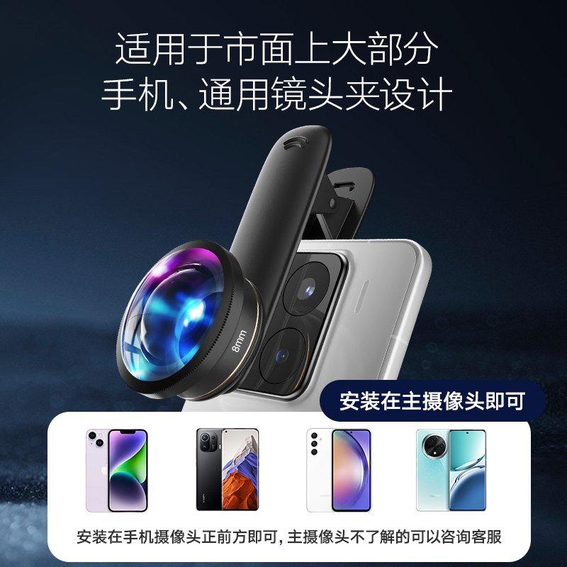 全屏魚眼鏡頭238度無暗角超高清手機前置通用拍照自拍外置超大廣角運鏡