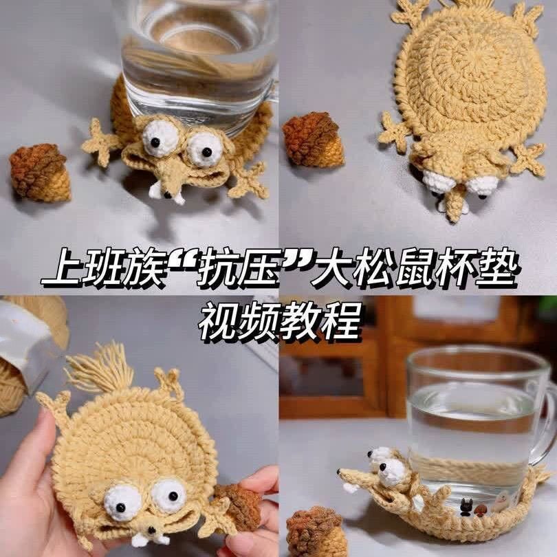 松鼠杯墊冰河世紀倉鼠杯墊鉤織毛線材料包大松鼠杯墊手工編織