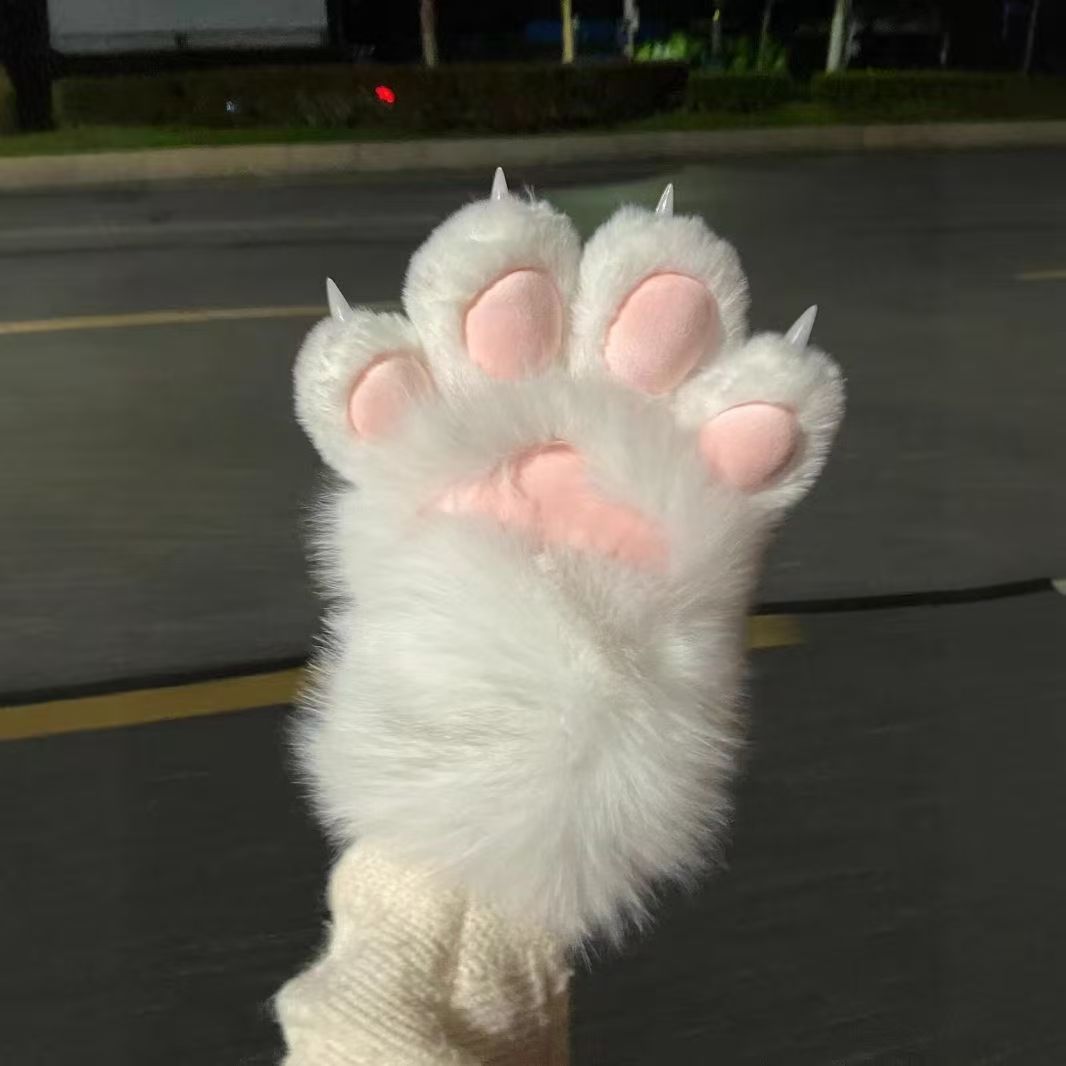 超萌毛絨手套手套柔軟可穿戴貓娘指甲吱吱叫貓爪學生手套