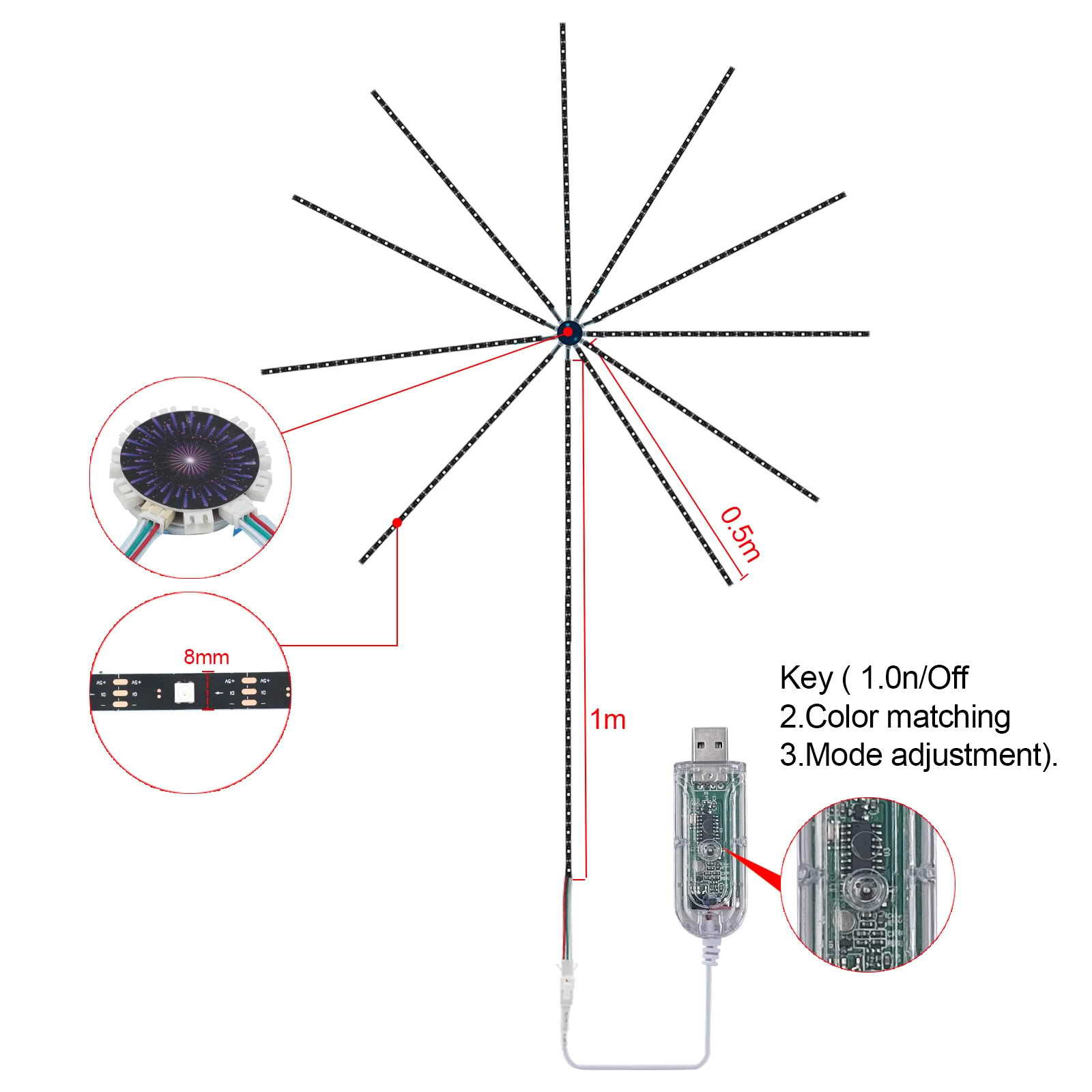 10條0.1M+1條0.3M 共78燈(一體式), 10條0.3M+1條1M 共120燈(一體式), 10條0.5M+1條1M 共180燈(一體式), 10條0.5M+1條1M 共180燈(分體式), 10條1M+1條2M 共360燈(分體式), 17條0.5M+1條1M 共285燈 多功能數碼旋轉, 23條0.5M+1條1M 共375燈 多功能數碼旋轉, 10條0.5M+1條1M 皮線煙花燈, 10條0.5M+1條1.5M 皮線煙花燈, 96燈直徑59厘米 帶支架 不帶加長立杆, 111燈直徑59厘米 帶支架 帶加長立杆 |