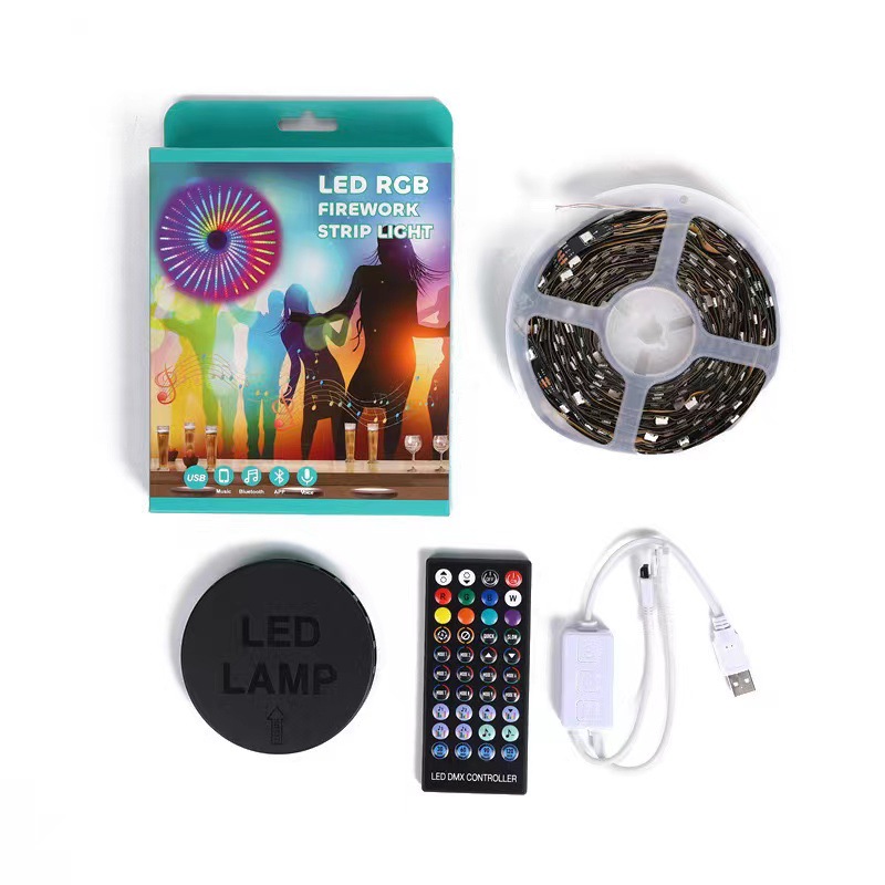 LED智能煙花燈 藍牙APP手機控制 聲控數碼幻彩LED煙花燈帶
