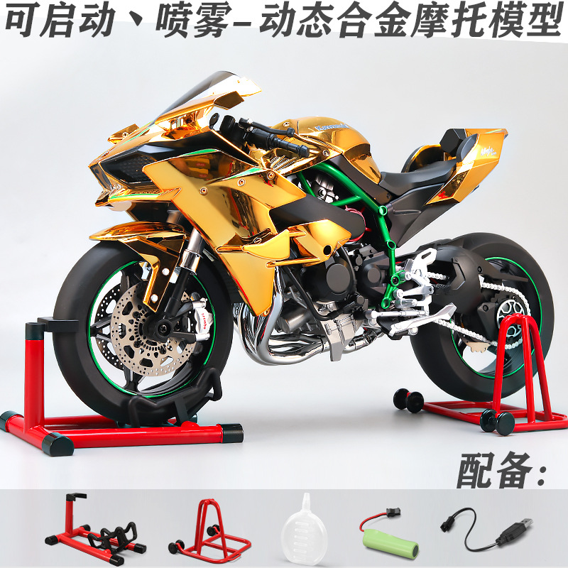 XLG【超大號】打火啟動噴霧川崎H2R1:6動態合金摩托車模型擺件