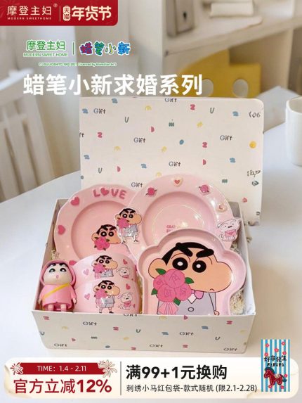 蠟筆小新餐具套裝碗碟盤家用生日訂婚結婚新婚禮物