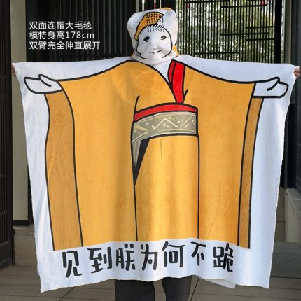 見到朕為何不跪雙層毛毯子搞怪龍玉濤表情包空調毯午睡法蘭絨睡袍