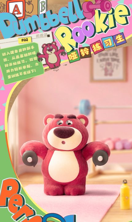 迪士尼草莓熊健身盲盒手辦潮玩公仔擺件