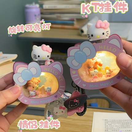 KT貓掛件木質DIY情侶掛件小巧精緻可愛禮物可發光