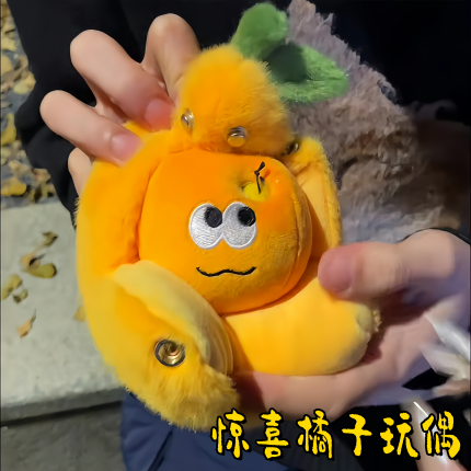 驚喜橘子玩偶創意可剝開可藏戒指毛絨公仔掛件